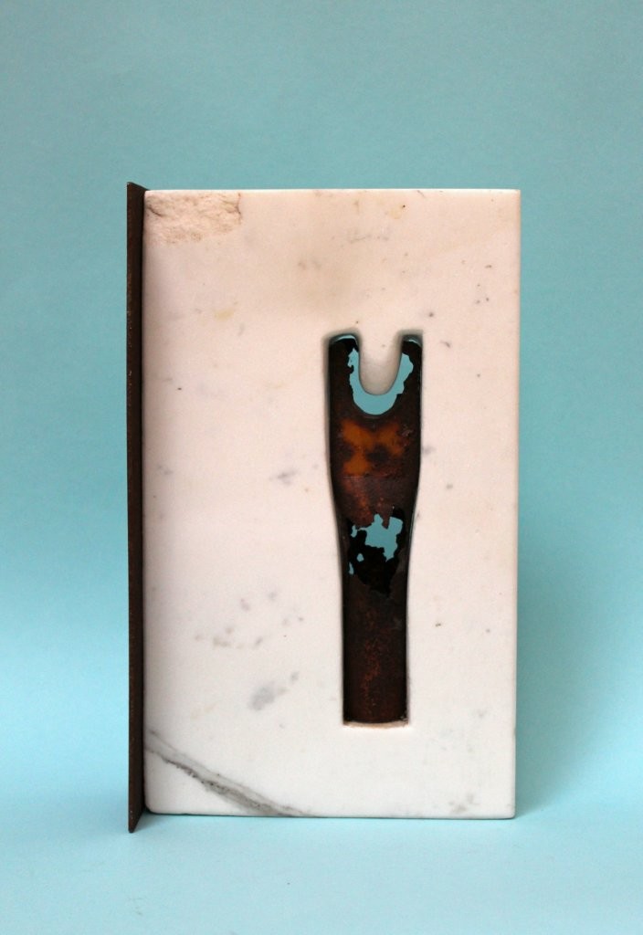 Fünf Marmorarbeiten und fünf peruanische Impressionen als Leinwandfenster präsentieren sich in dem Ambiente.